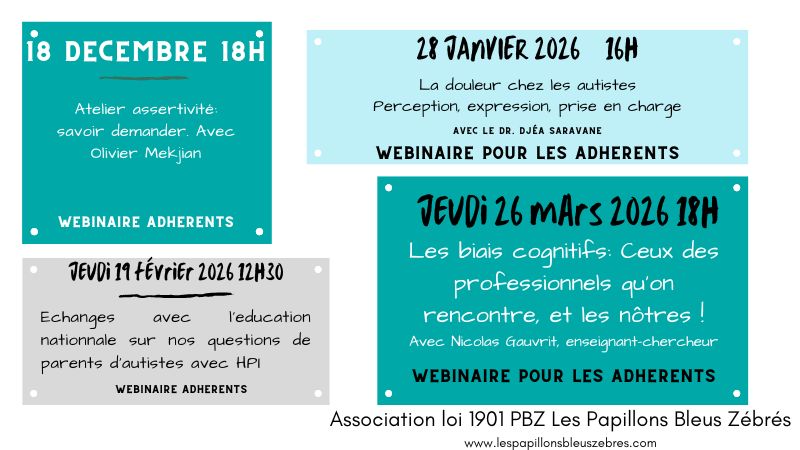 Nos enfants sont des PBZPapillons Bleus Zébrés, #doublementexceptionnels, prêts à prendre leur envol, pour peu qu’on les aide à déployer leur ailes. Nous sommes, comme vous, des parents d’enfants qui ont un TSA associé à un HPI, et nous nous sommes regroupés dans le but de nous retrouver pour échanger et partager nos expériences.